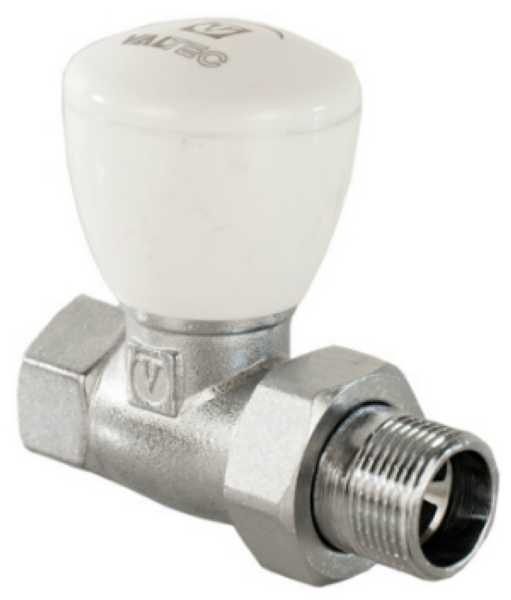 (VT.008.N) Прямой радиаторный клапан. Основное назначение – ручное плавное регулирование расхода теплоносителя через отопительный прибор. При замене регулировочной ручки на защитный колпачок может использоваться в качестве настроечного клапана. Наличие полусгона позволяет монтировать и демонтировать клапан без демонтажа трубопровода. Ремонтопригодный. Рабочая температура – до 130 °С, давление – до 10 бар. Резьба присоединений – внутренняя/наружная.
