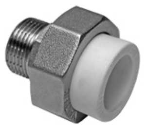 Полипропиленовый фитинг для создания разъемного, с использованием накидной гайки, соединения полипропиленового трубопровода с трубопроводом или арматурой из других материалов. Уплотнительное кольцо выполнено из синтетического каучука EPDM. Резьба фитинга – наружная или внутренняя трубная по ГОСТу 6357.