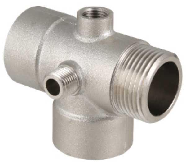 Пятиходовой соединитель для насоса VTr.600 выполнен из латуни CW617N методом горячей объемной штамповки, имеет никелевое гальванопокрытие.