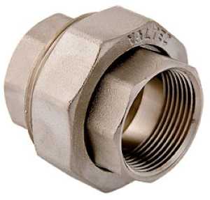 (VTr.340.N) Латунная никелированная разъемная муфта. Резьба – внутренняя/внутренняя, цилиндрическая трубная по ГОСТу 6357 (ISO 228, EN 10226), совместима также с наружной конической трубной резьбой по ГОСТу 6211 (ISO R7). Соединение частей муфты осуществляется с помощью накидной гайки. Уплотнительное кольцо выполнено из синтетического каучука EPDM. Гайку следует накручивать с приложением момента не более 30 H•м.